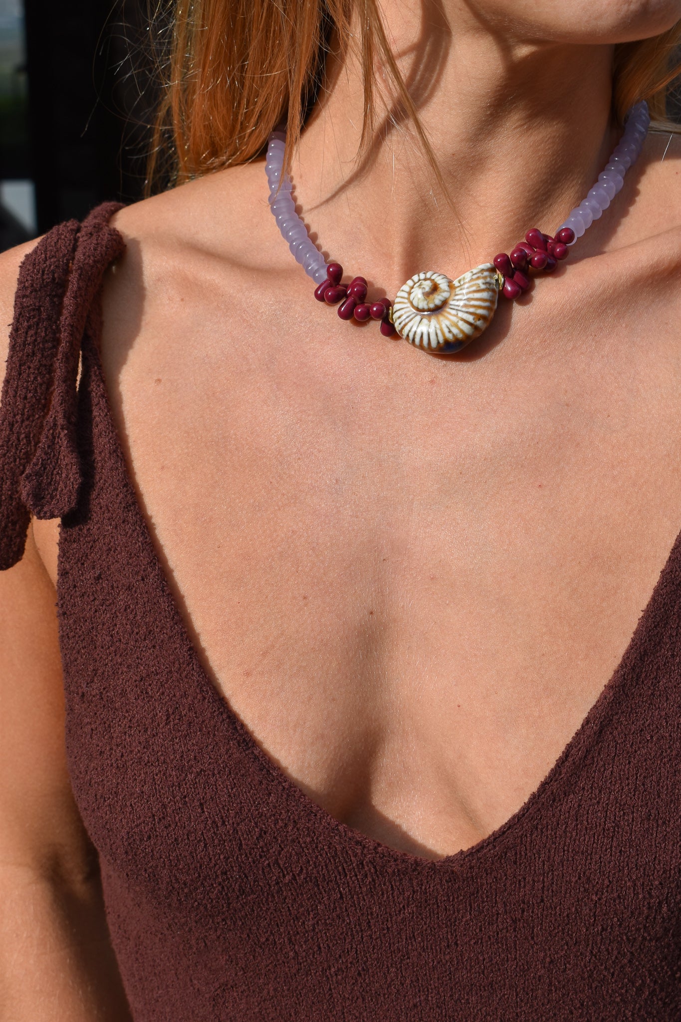 Collar de hilo transparente ajustable con mostacillas de cerámica, vidrio, acrílica y bronce enchapado en oro.