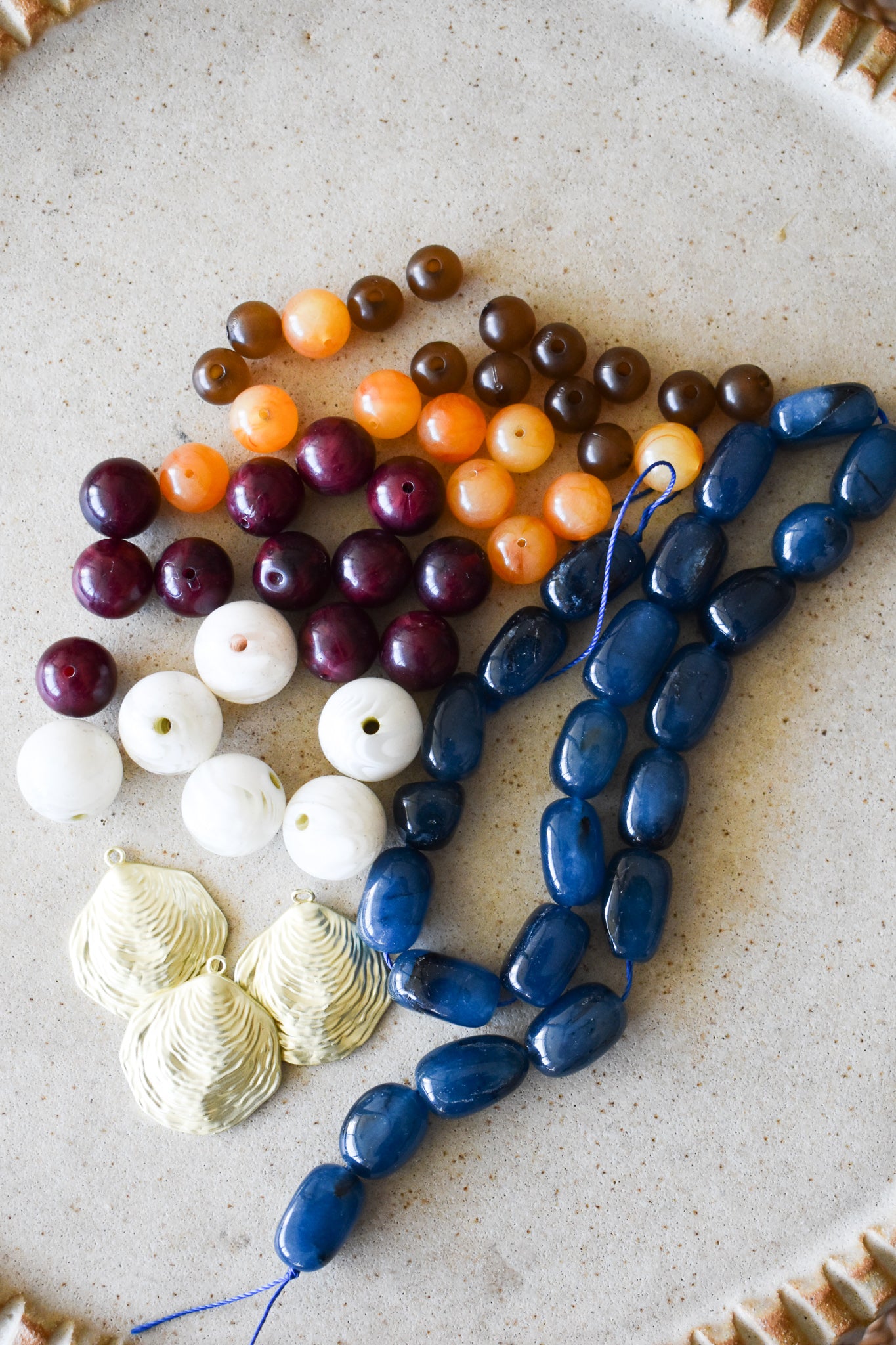 Collar de hilo transparente ajustable con mostacillas de vidrio, acrílicas y bronce enchapado en oro.